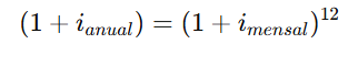 | Taxa Anual (% a.a.) | Taxa Mensal Equivalente (% a.m.) |